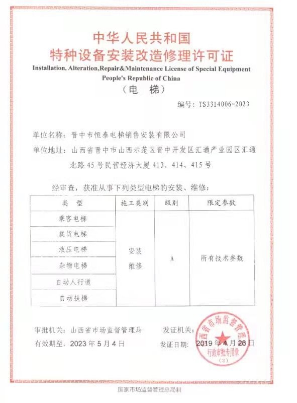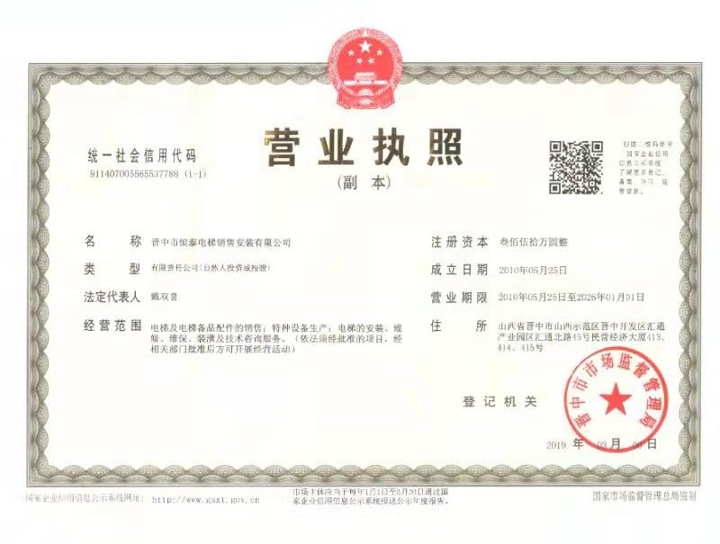 晉中市恒泰電梯銷售安裝有限公司